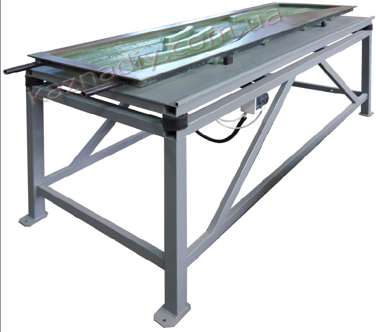 Приготовленную бетонную смесь раскладывают в форму. Армируют проволокой ВР (вытянуто-рыфленная). Арматурой (например в случае изготовления бетонных столбов для заборов). Вибростол дает возможность уплотнить бетонную смесь удалив воздух.